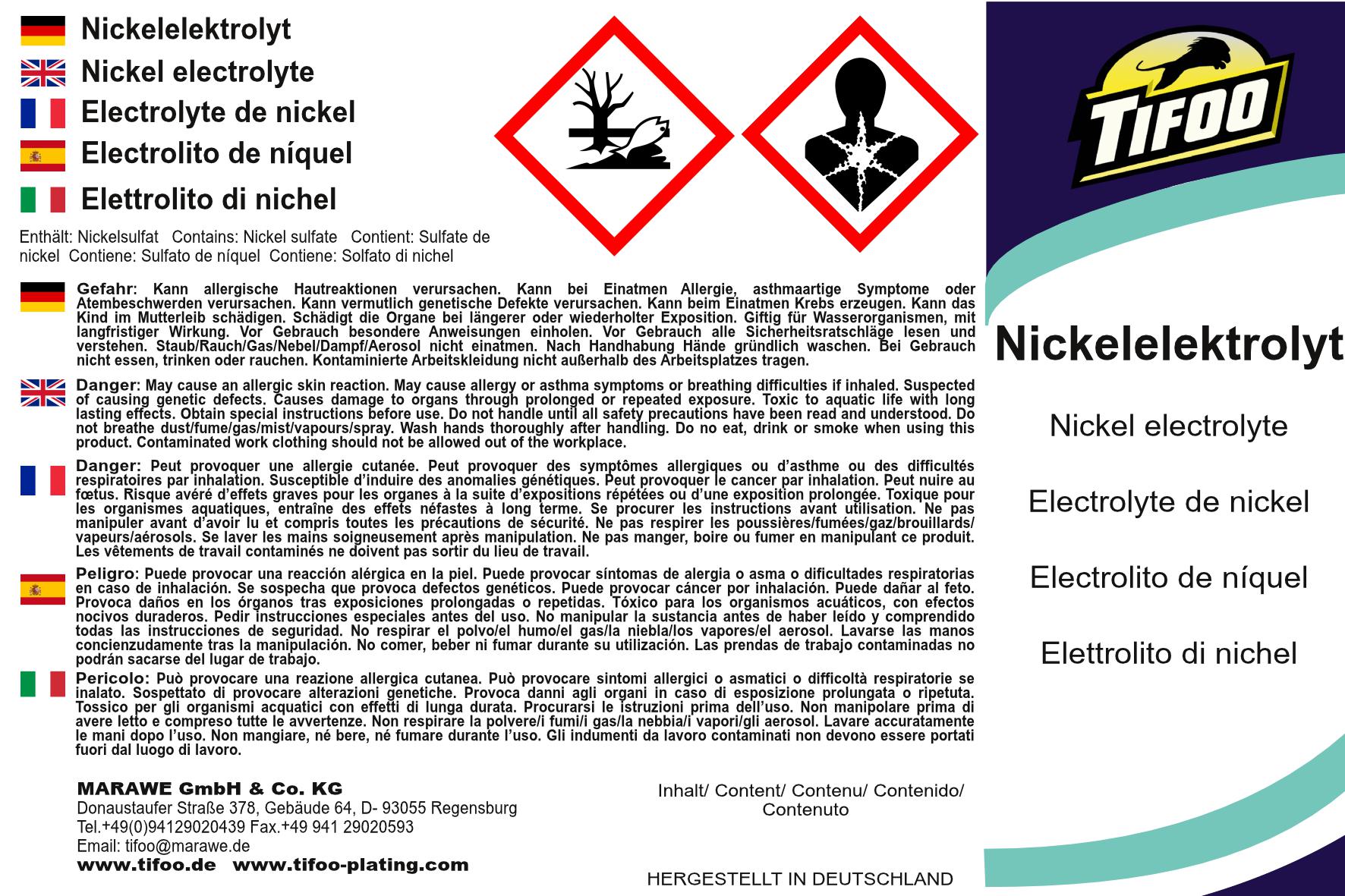 IMPORTANT: Until further notice, this product can only be ordered via our contact form. If you would like to add nickel electrolyte to an order, please write this in the order note or contact us after placing your order.