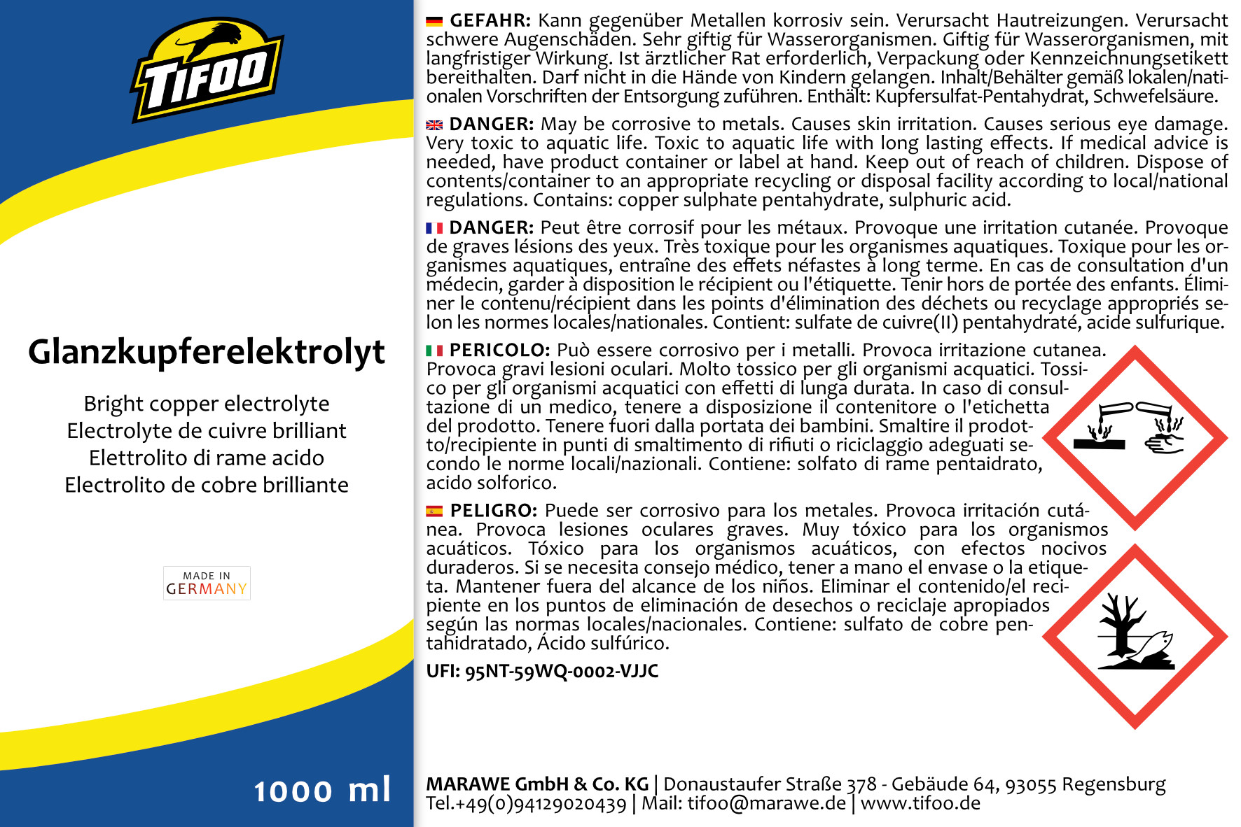 Tifoo Electrolyte de cuivre brillant (acide) pour le cuivrage - cuivrage galvanique brillant